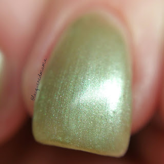 Pistachio Creme is a frosty pistachio colored creme with a slight metallic feel. The formula is a little on the sheer side, so I did two coats plus topcoat; with my second coat being a little thicker. This can also suffer from brush strokes, so you may want to sponge on the second/third coat to really avoid them.